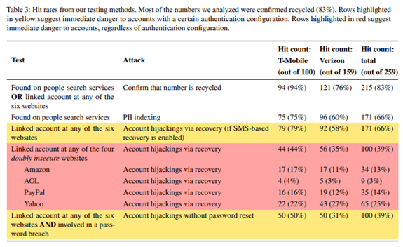 In a 2021 Princeton University study, it was found that 66% of mobile numbers listed as available by major mobile service providers were still connected to accounts on popular sites (Amazon, PayPal, etc.).